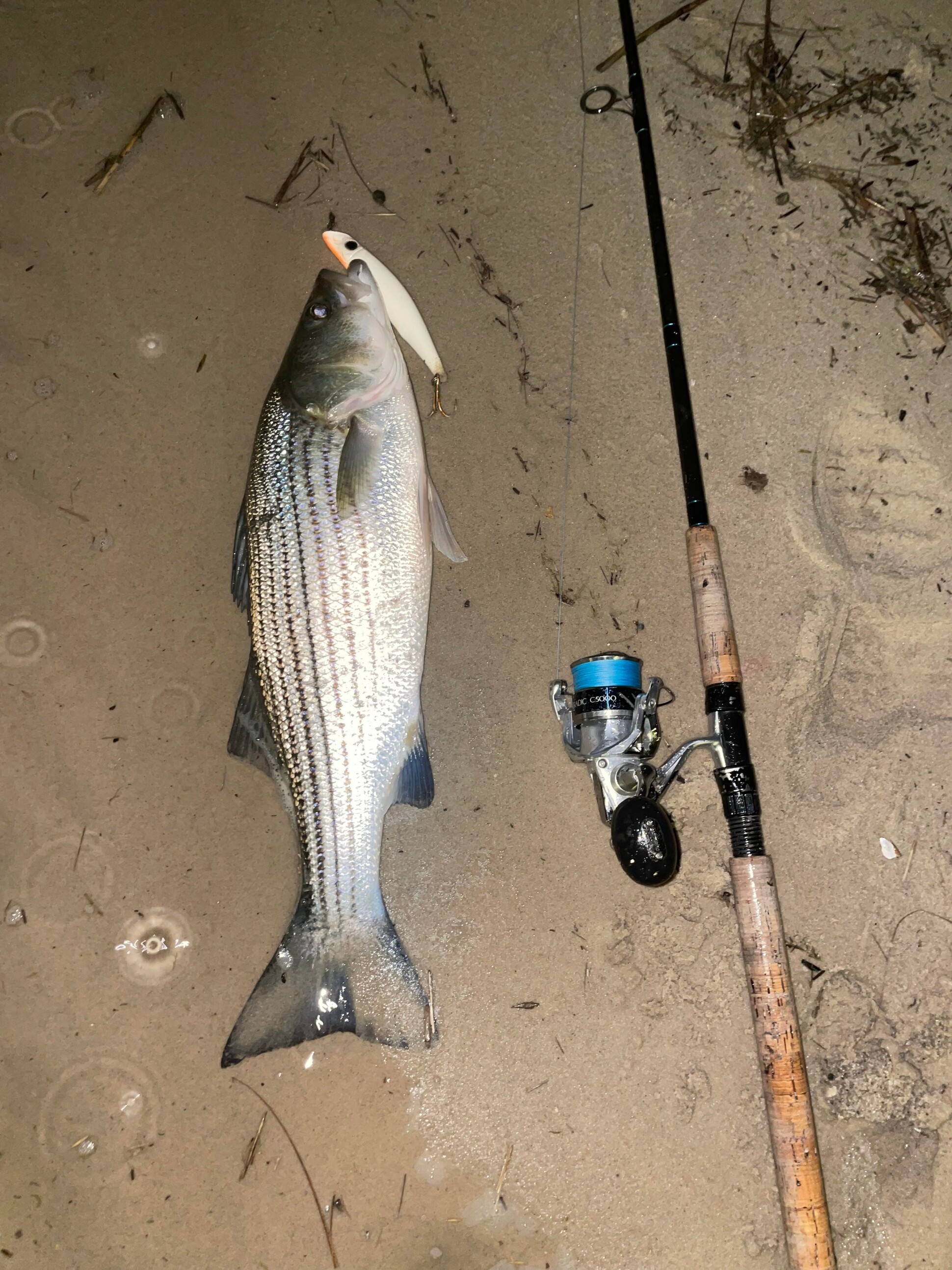 Striper have become much more prevalent over the last two weeks. They are pushing out of the rivers with the warmer water temps. That also means they are becoming much more active. River wise still constant with bloods and clams. Becoming much more active on plastics during the day as well especially fishing creeks on an outgoing tide. Hearing lots of schoolie sized fish with quite a decent amount of keepers. Got a couple reports of fish over the 50 inch mark as well. They are pushing towards the bridges at night with lots of action on soft plastic. Our cover pictures for this report is from one of our former employees Thomas H. He has been having incredible action at night around the bridges on bigger top-water plugs, with his average fish being over 30 inches. Fish are becoming more active by the day so get out and enjoy this beautiful weather!