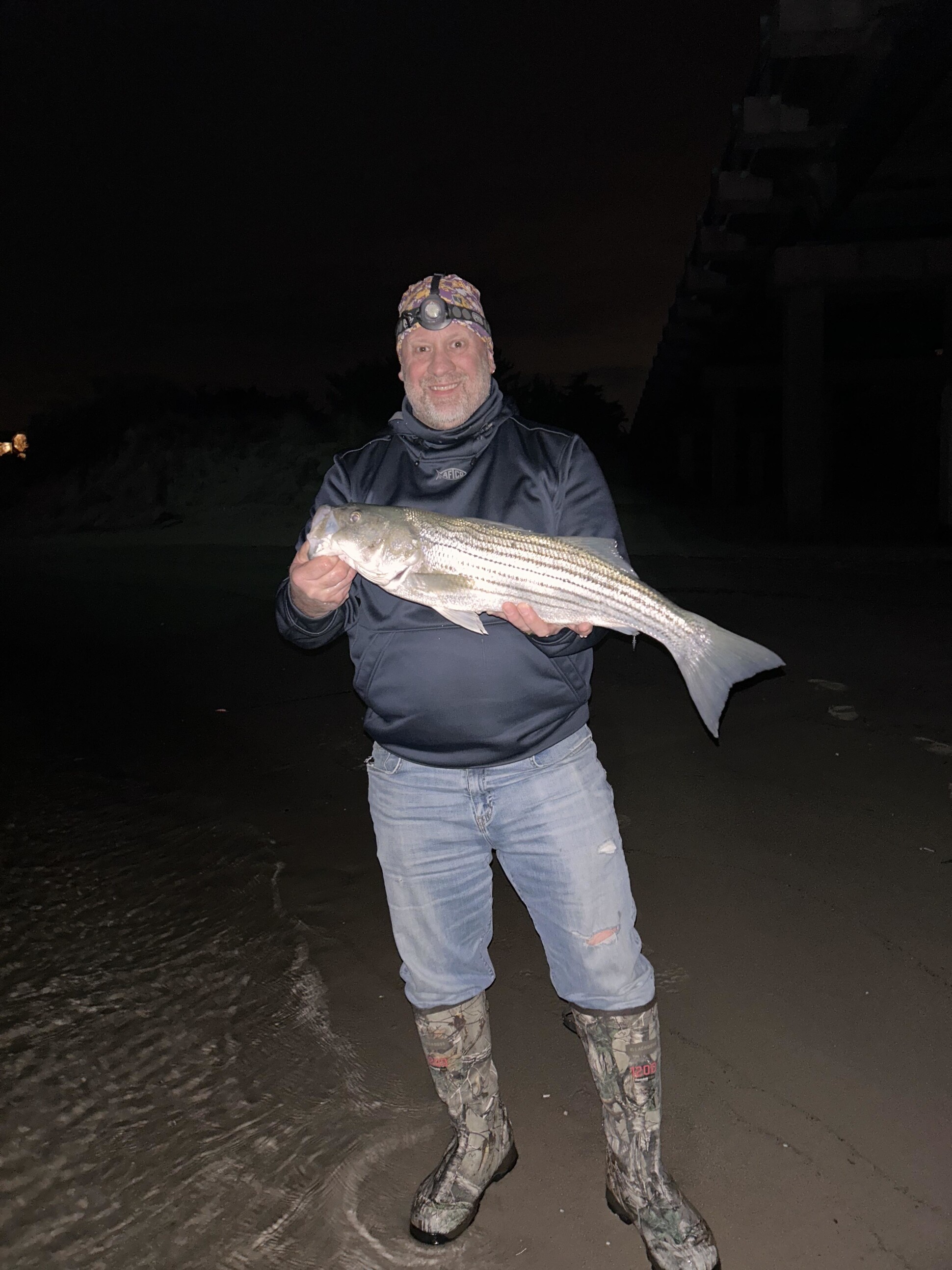 Thanks to Captain Frank Breakell of Brynnie B Fishing for our cover photo. This was caught last night 4/16/23 fishing the inlet on a pink zoom. A beautiful 27 inch nighttime bass!