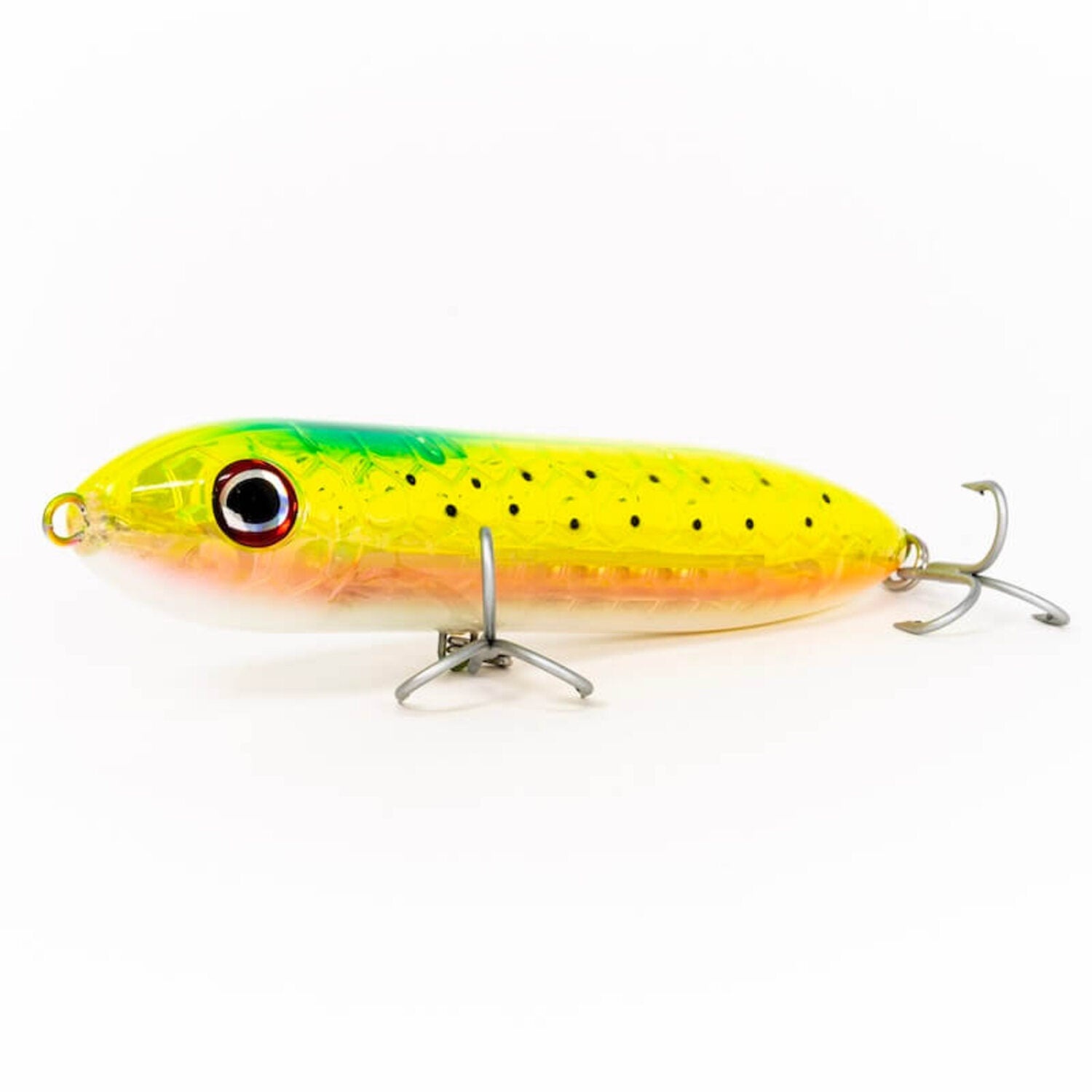 The Dark Matter Astro Spook is a premium fishing lure designed for targeting large, aggressive fish. This innovative lure features dual modes, allowing for versatile fishing techniques. Its unique design enables the lure to create a wide walk-the-dog action or a tight splash, making it irresistible to predators.