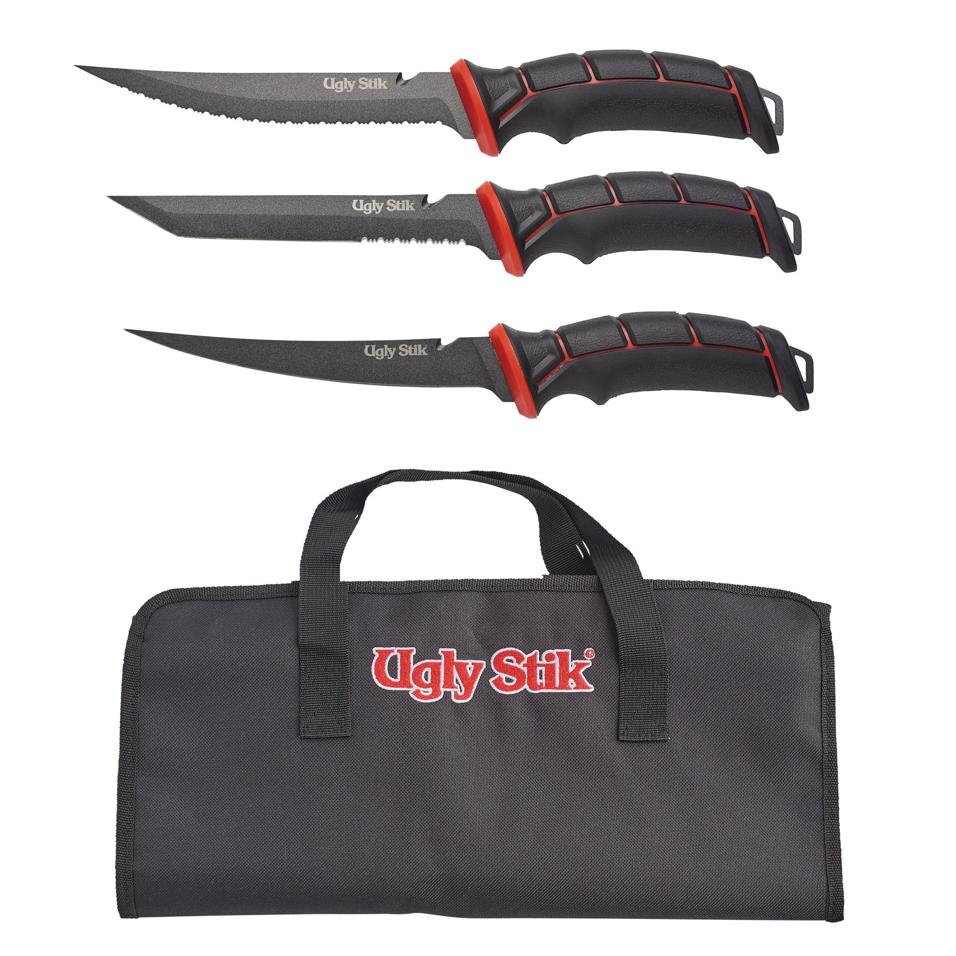 The Ugly Stik Ugly Tools 3 Pack Knife Set is designed for anglers and outdoor enthusiasts seeking durability and reliability. Each knife in the set features a robust design with high carbon stainless steel blades and non-slip Ugly Tuff™ grips, ensuring superior control in any condition.