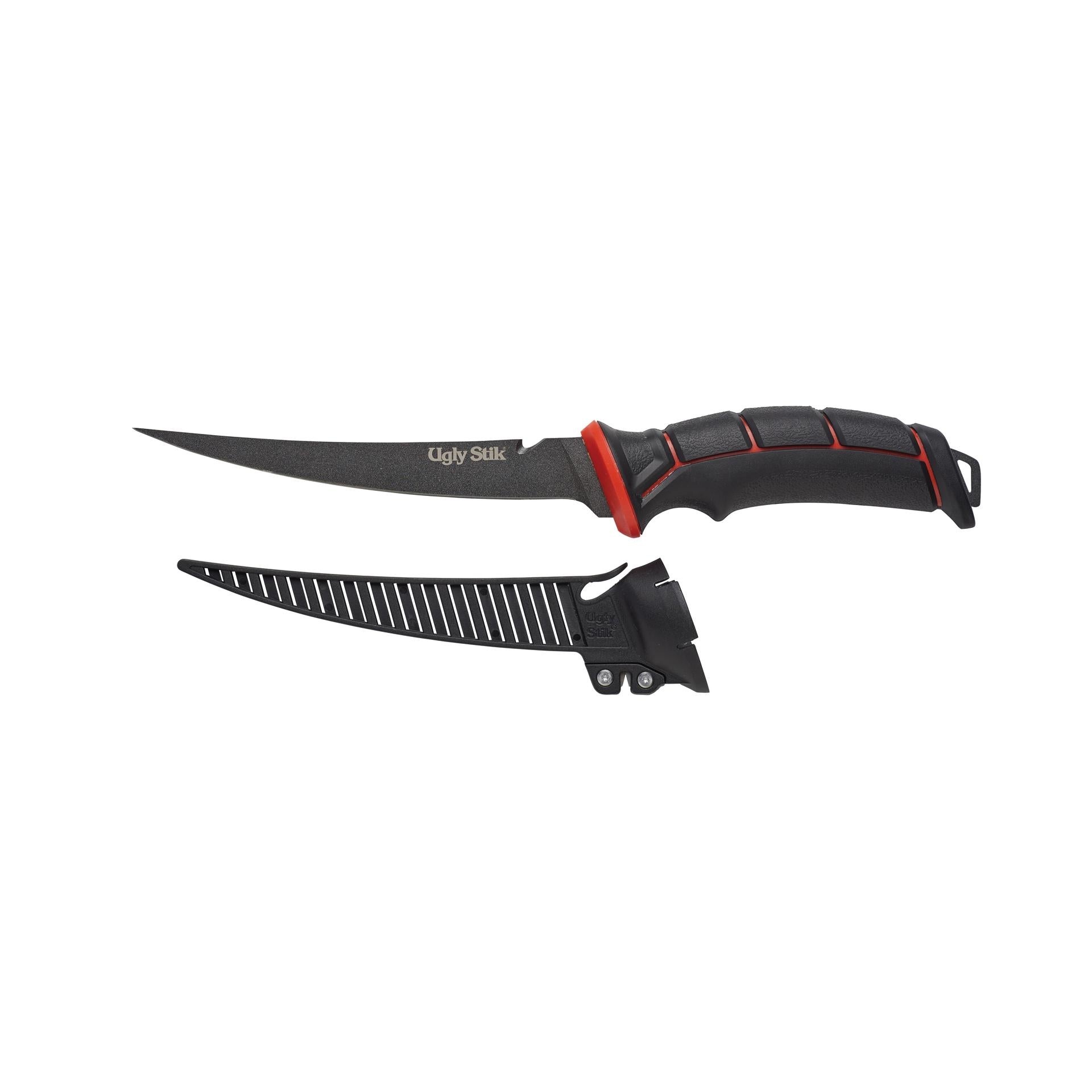 The Ugly Stik Tools 7in Tapered Blade Knife is a robust and dependable tool designed for both anglers and home chefs alike. With its full tang 8CR14 high carbon stainless steel and semi-flex, thin blade, this knife offers precision and durability. The Ugly Tuff™ Grip ensures non-slip handling in any condition, making it an ideal choice for outdoor activities or kitchen use.